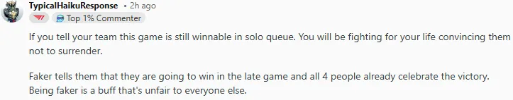 今日LCK杯比赛中T1以2-0战胜KT,其中第二局T1曾一度落后接近14k经济最后实现大翻盘,赛后国外论坛Reddit引发热议,部分评论翻译如下: